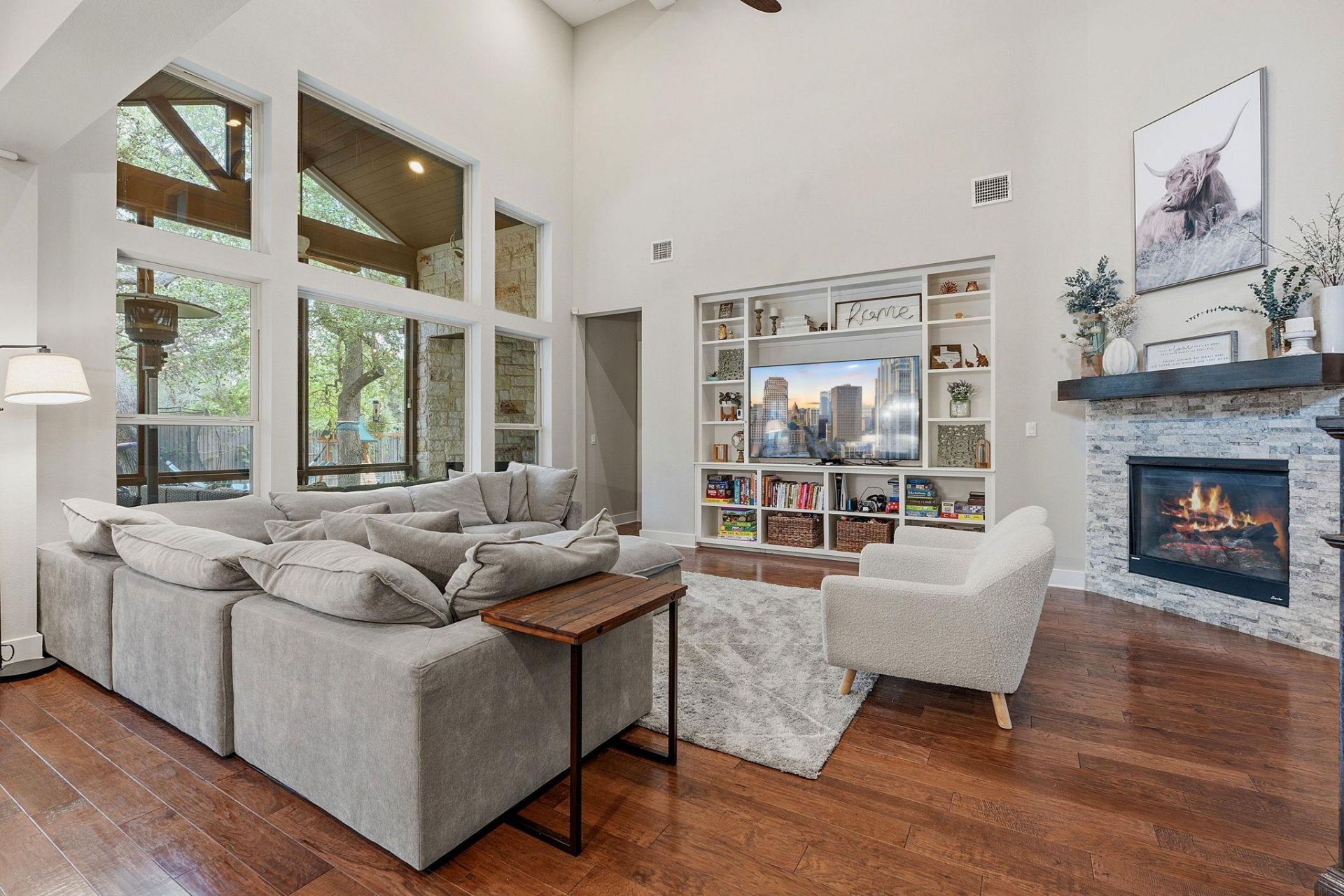 Beautifully maintained 5 bedroom/4 bathroom home on just under .25 acres with huge oak trees in rear. Open floorpan with soaring ceilings in the living room and entry, eat in kitchen/breakfast nook area with window seat, large island, dual primary suites - one on main level and guest suite/in-law suite on second level. Main level Master has large bathroom, dual vanities, walk-in shower, soaking tub, his/her closets. Upper level suite has kitchenette with bar sink, mini fridge and cabinets, walk-in shower, single vanity, 2 large walk-in closets. Dedicated office. Secondary bedrooms - 1 additional on main and 2 on 2nd level. Large game/play room on second level with a second sitting/game area as well. Laundry room has been updated with cabinetry and counters, updated backsplash, screened in porch with sitting area and fireplace, mosquito misting system in back yard, saltwater pool with large hot tub, whole home generator (natural gas - Generac), whole home water softener system, reverse osmosis at kitchen sink, plantation shutters on front and sides of home and in all bedrooms, new carpet April 2026, whole home painted April 2026, updated lighting. Vivint home security. Backs to Yates Preservation/greenbelt. Some furniture may be negotiable.