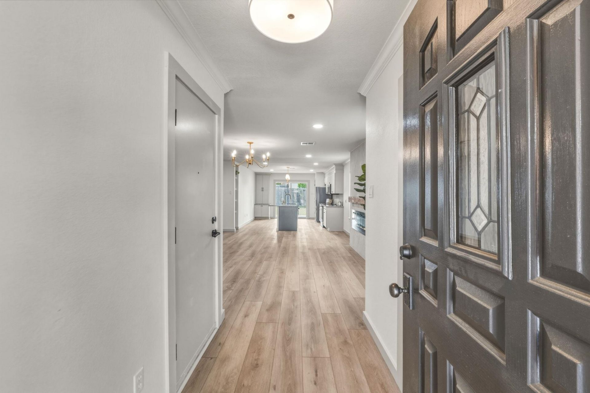 Step into luxury with this beautifully updated, turnkey home, where modern design meets high-tech functionality. This East-facing residence boasts incredible curb appeal with a tree-shaded front yard, brand-new roof, and freshly painted exterior. The interior has been meticulously revamped to provide a bright, open, and stylish living experience. Key upgrades include; sophisticated vinyl plank flooring, crisp new baseboards, designer paint, and contemporary fixtures throughout. The heart of the home is the oversized, open-concept kitchen, featuring stunning granite countertops and a massive bar, perfect for entertaining. The living area features a high-tech electric fireplace with customizable lighting, beautiful wood mantle equipped with a built-in plug for a seamless TV setup. Energy efficiency and modern luxury are enhanced by smart, Wi-Fi-adjustable LED recessed lighting (with top-glow options) and remote-operated blinds throughout the home. The primary suite is a private retreat boasting LED lighting, a stunning walk-in shower, and an expansive closet. Upstairs, a convenient laundry room offers new flooring and built-in shelving. The second living area provides a versatile space, while the secondary bedrooms are perfectly placed, anchored by a large secondary bath featuring a quartz double vanity. Exterior features include partial gutters, a covered back patio, and a fully fenced, private backyard with an extended deck ready for your weekend barbecues. Unbeatable Location: Centrally located in Leander, this home is within walking distance to top-rated schools, restaurants, and entertainment. This level of quality and detail is rare so dont miss your chance to own this modernized gem!
